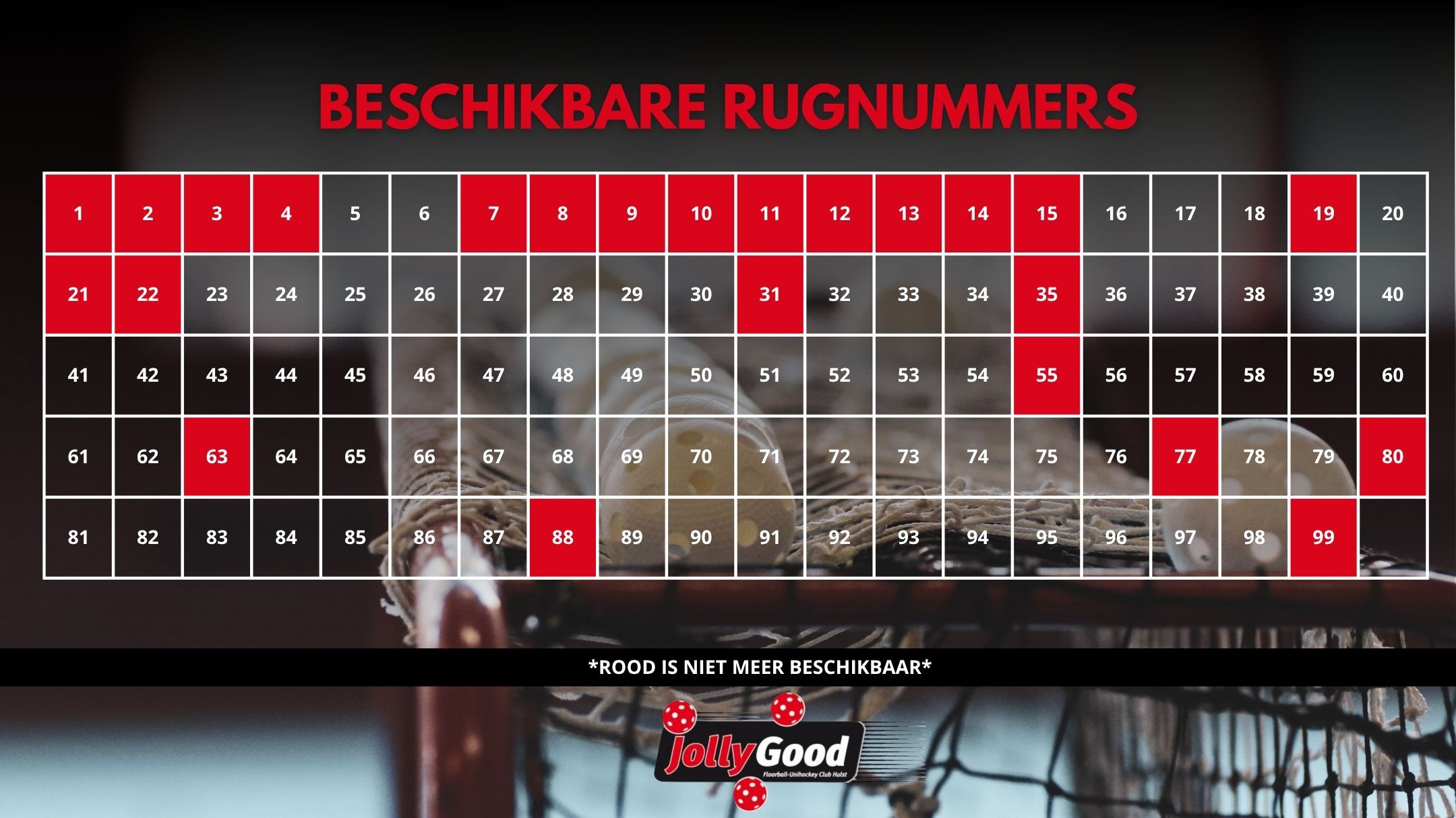 De Clubshirts zijn tijdens de training te passen, geef dit wel op tijd aan dan zorgen we dat de shirts klaar liggen. De rugnummers kunnen vrij worden gekozen alleen als een nummer al gekozen is kan deze niet opnieuw worden gekozen